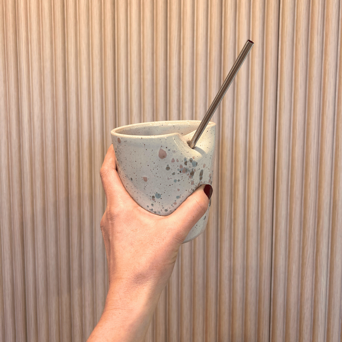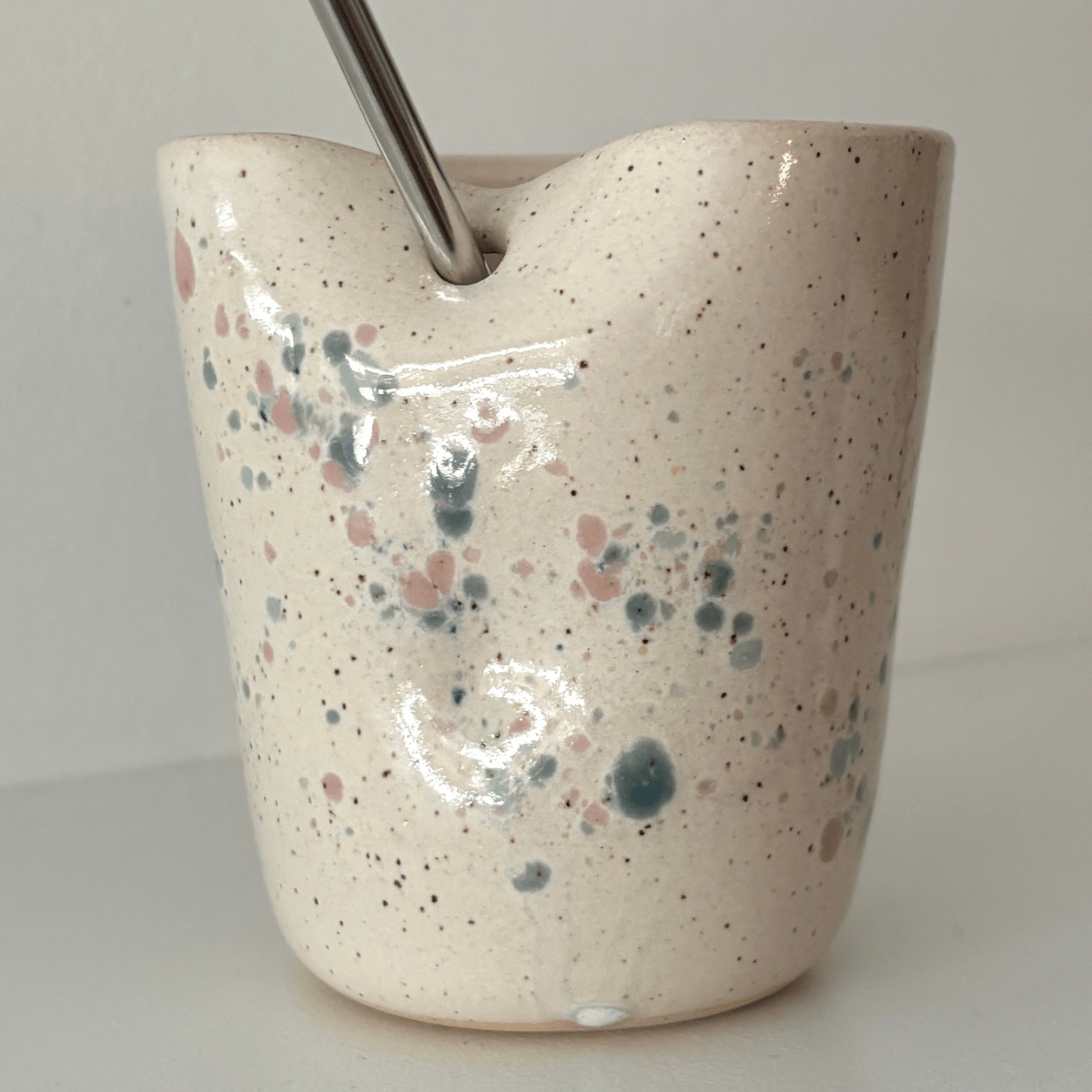 Speckled Ceramic Straw Cup with Metal Straw | handcrafted pottery